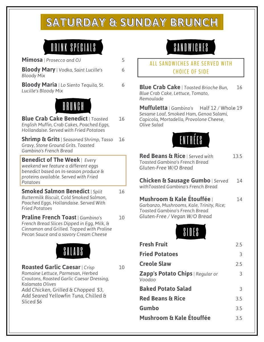 At Saint Lucille's Kitchen Menu, you’ll discover a delightful mix of Southern comfort food and fresh, locally sourced ingredients, all served with a side of warmth and hospitality. Located at 8 Emory Pl, Knoxville, TN, this cozy spot offers everything from hearty breakfasts to mouthwatering dinners, perfect for a casual meal with friends or a family gathering.